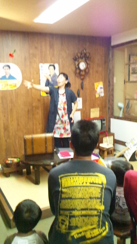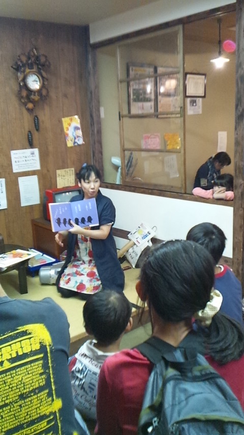 *午後2時ちょっとすぎからは 子育て支援センター育ちの森館長のしいやさんショーが行われました。絵本の読み聞かせとマジック。せなけいこさんの「おばけなんてないさ」を歌に合わせて読み聞かせ